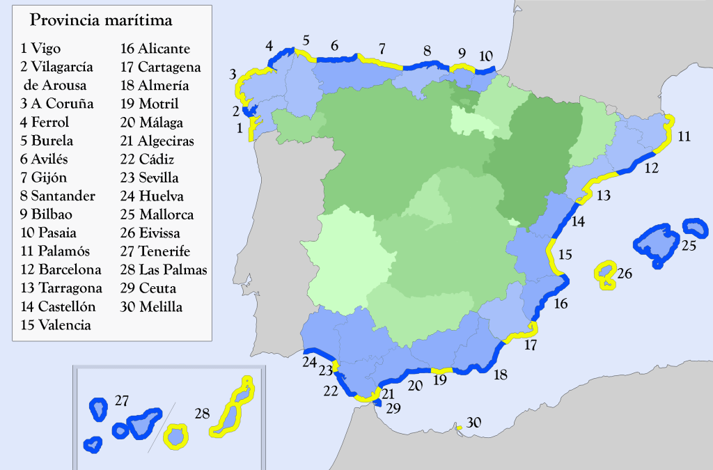 A continuació s’observa la província marítima. Espanya està dividida en 30 províncies marítimes les quals no sempre segueixen els límits polítics. La Mar de l’Ebre és troba, per complet, dintre de la província marítima de Tarragona (TA).