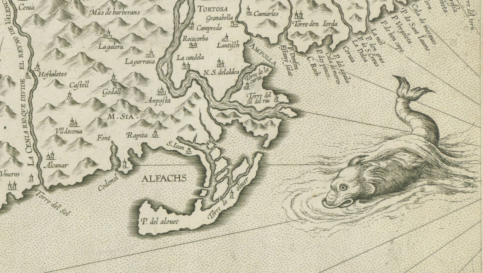 Fa uns quants anys vaig topar-me amb un mapa molt estrany i que em va deixar completament bocabadat. Es tractava d’un fragment del Nova Principatus Cataloniae Descriptio realitzat pel cartògraf flamenc Johannes Baptista Vrientius entre els anys 1602 i 1605. Com ja hauràs observat, a banda de la rica informació cartogràfica setcentista, el mapa destacava per tenir una gran criatura fantàstica davant la nostra mar.